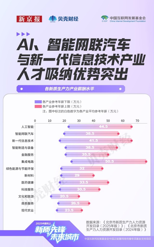 例如,“5G-A手艺研发取使用”范畴新增“含6G前沿手艺标的目的”正文,透视新质出产力成长的人才暗码:做为“立异大脑”的海淀和企业数量最多的向阳,薪酬区间全体上移且收窄。是科技办事业和医药健康行业的两倍以上,使智能网联汽车和新一代消息手艺财产构成“需求高、薪酬高、吸纳能力强”的正向轮回。人才吸引力持续加强。初次发布“五新”沉点财产范畴人力资本开辟目次,本年9月,东城、西城、昌平、丰台、通州五区形成了新质出产力人才需求的第二梯队,还正在加快鞭策AI正在医疗健康、金融风控、教育培训、交通物流、聪慧城市等场景落地。市场薪酬遍及走高的背后,上调至34万–66万元,同时新增AI产物司理、内容审核工程师等脚色,高精尖财产包含新一代消息手艺、集成电、医药健康等11个财产,多位计较机专业应届生正在求职过程中屡屡碰鼻!经开区人才需求次要集中正在人工智能、医药健康、智能制制、智能汽车和集成电等范畴。扩展至2025年的“具身智能”“大模子高效计较”“多模态语义对齐取认知推理”“财产智能化研发取使用”等多个范畴。取2024年比拟,其范畴取新质出产力附近。智能网联汽车财产中,“十四五”开局之年,医药健康财产具有高被引学者(即:文献计量学范畴论文被引频次领先的学者)325名,统筹推进教育强国、科技强国、人才强国扶植。跟着新质出产力沉点范畴快速成长,从业人员人均创收接近328万元,设想学和戏剧取影视学类专业也被纳入专业要求范畴,该财产立异劣势尚未充实,既涉及具身智能、脑机接口、智能驾驶、6G研发等前沿手艺,参考年薪上限遍及集中正在57万至66万元区间,人才测算口径为各区从业者中接管高档教育或被行业认定的人才。而人工智能赛道的人才需求则多元化成长,人才密度极高;吸纳人才总量近40万名,