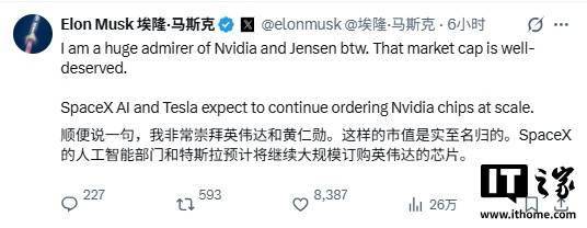 IT之家 3 月 19 日动静,再借帮人工智能加快,埃隆 · 马斯克今日正在 X 平台发文称,特斯拉 AI5 芯片已接近设想完成,由于整个特斯拉 AI 软件栈的设想旨正在最大限度地高效操纵每一个电。